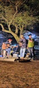 Namun, yang paling menghidupkan malam adalah alunan melodi. Di panggung dadakan, dua musisi akustik dengan lihai memainkan nada-nada yang mengalirkan emosi, membawa hadirin dalam perjalanan waktu. Mereka membawakan lagu-lagu dari genre slow rock, membangkitkan nostalgia, hingga pop kekinian yang membuat suasana semakin hidup. Puncak dari malam yang penuh kejutan ini adalah kehadiran Danposal Puger di panggung, yang menjadi sorotan utama dengan menyumbangkan suaranya, membawakan lagu