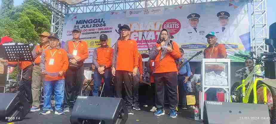Sartini ,Kepala Dinas Koperasi dan usaha Mikro Jember menjelaskan kegiatan Hari Koperasi ke 77 ini ,kami laksanakan Jalan sehat gratis . Hadiahnya ada sepeda motor listrik, sepeda gunung , Voucer Umroh dan masih banyak lagi puluhan door prize menarik lainnya. Selain itu kita melibatkan PMI untuk donor darah dan layanan Adminduk dari Dispendukcapil.