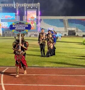 Tak mau ketinggal biduanita penyanyi danddut Tasya Rosmala membawakan lagu jingle Porprov Jatim yang di ciptakan gubernur Jatim Khofifah Indar Parawansa disambut sorak sorai penonton sambil bergoyang.